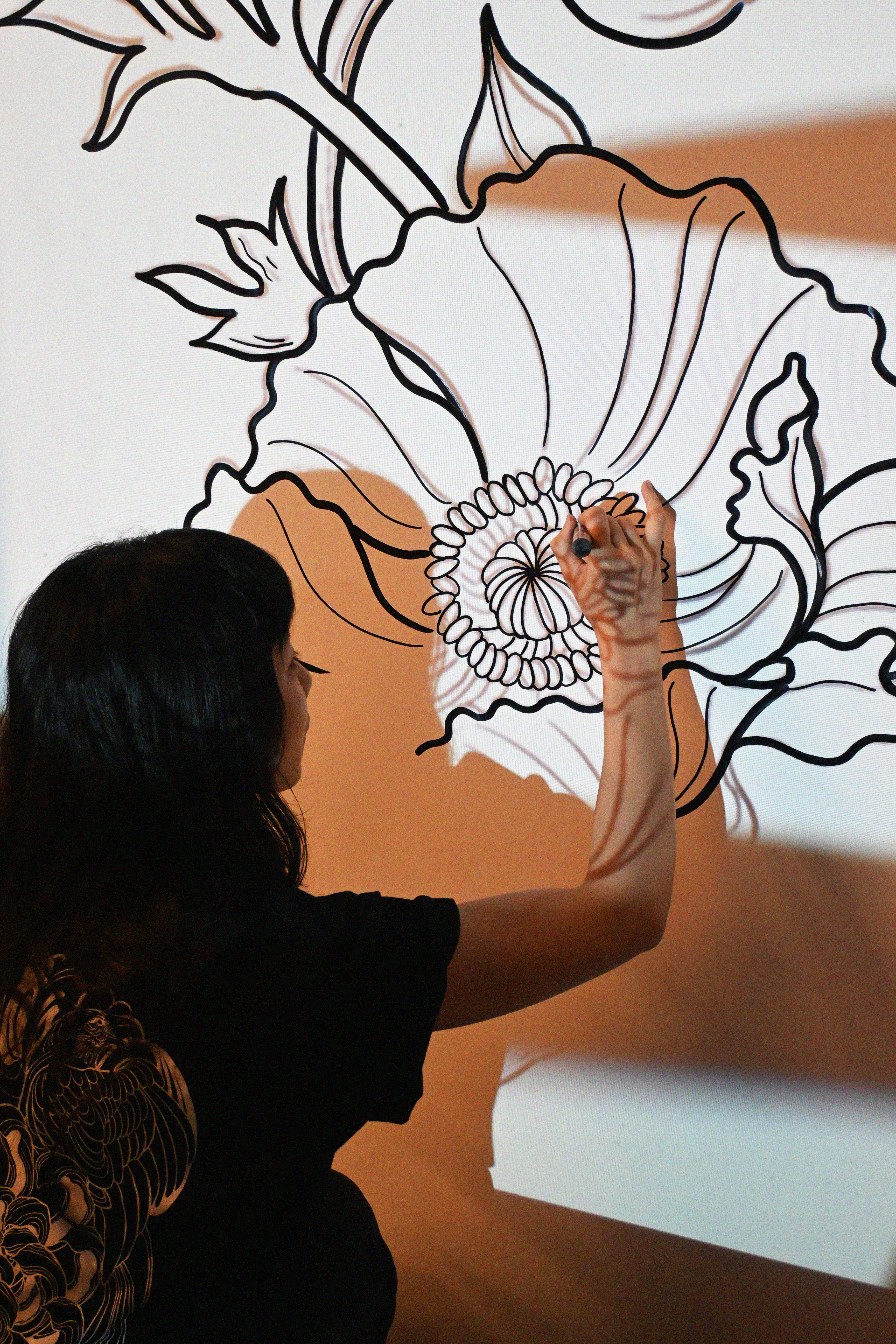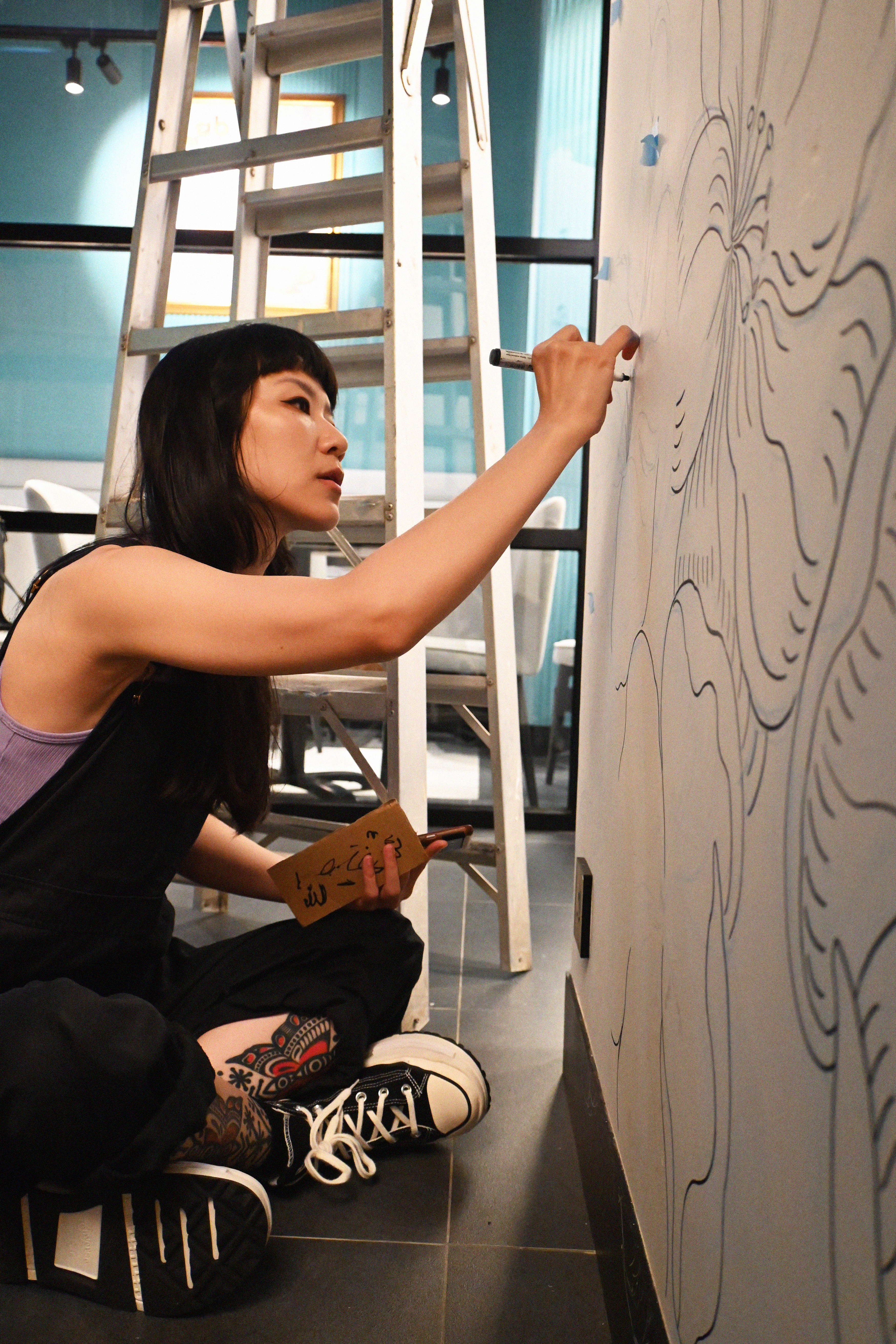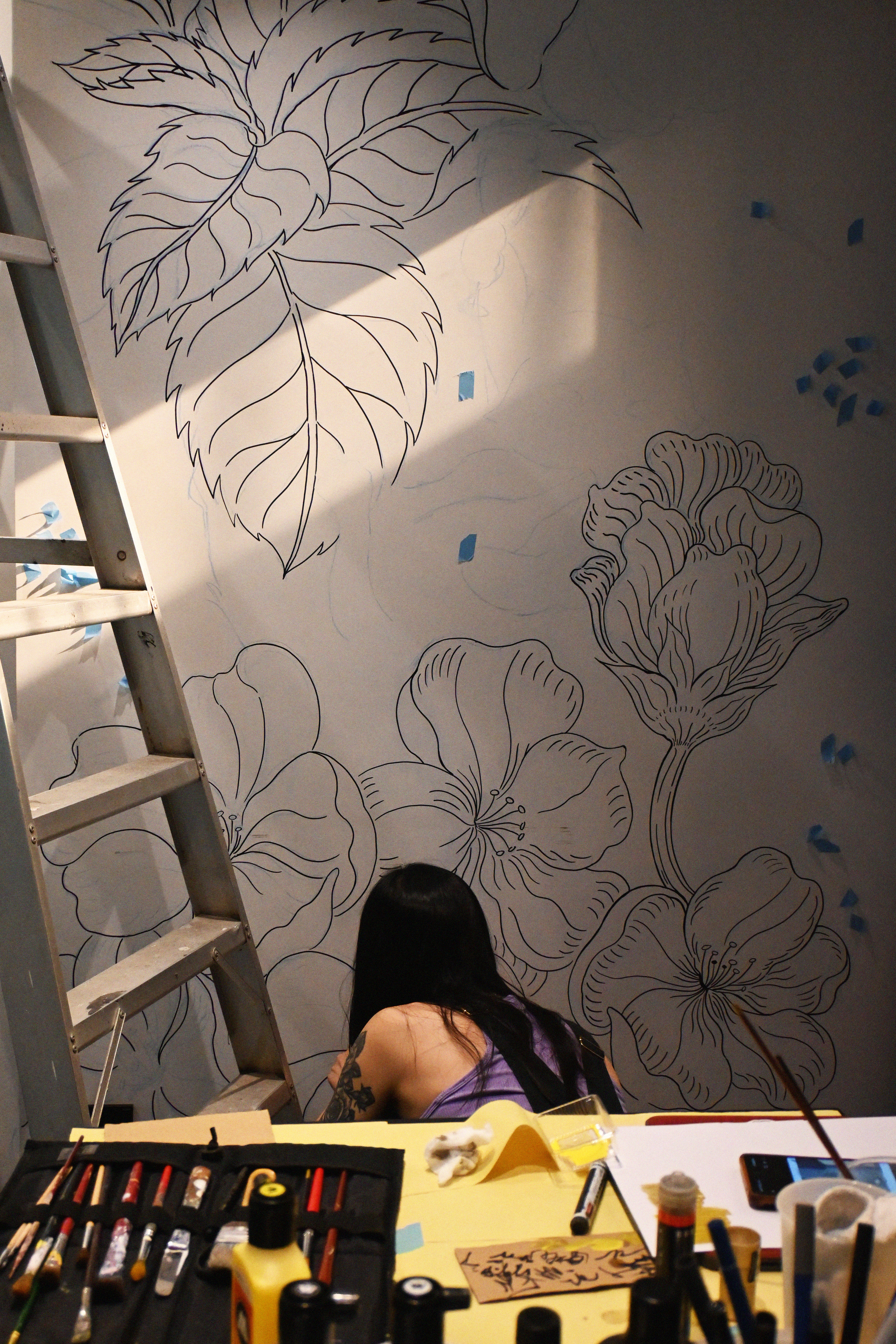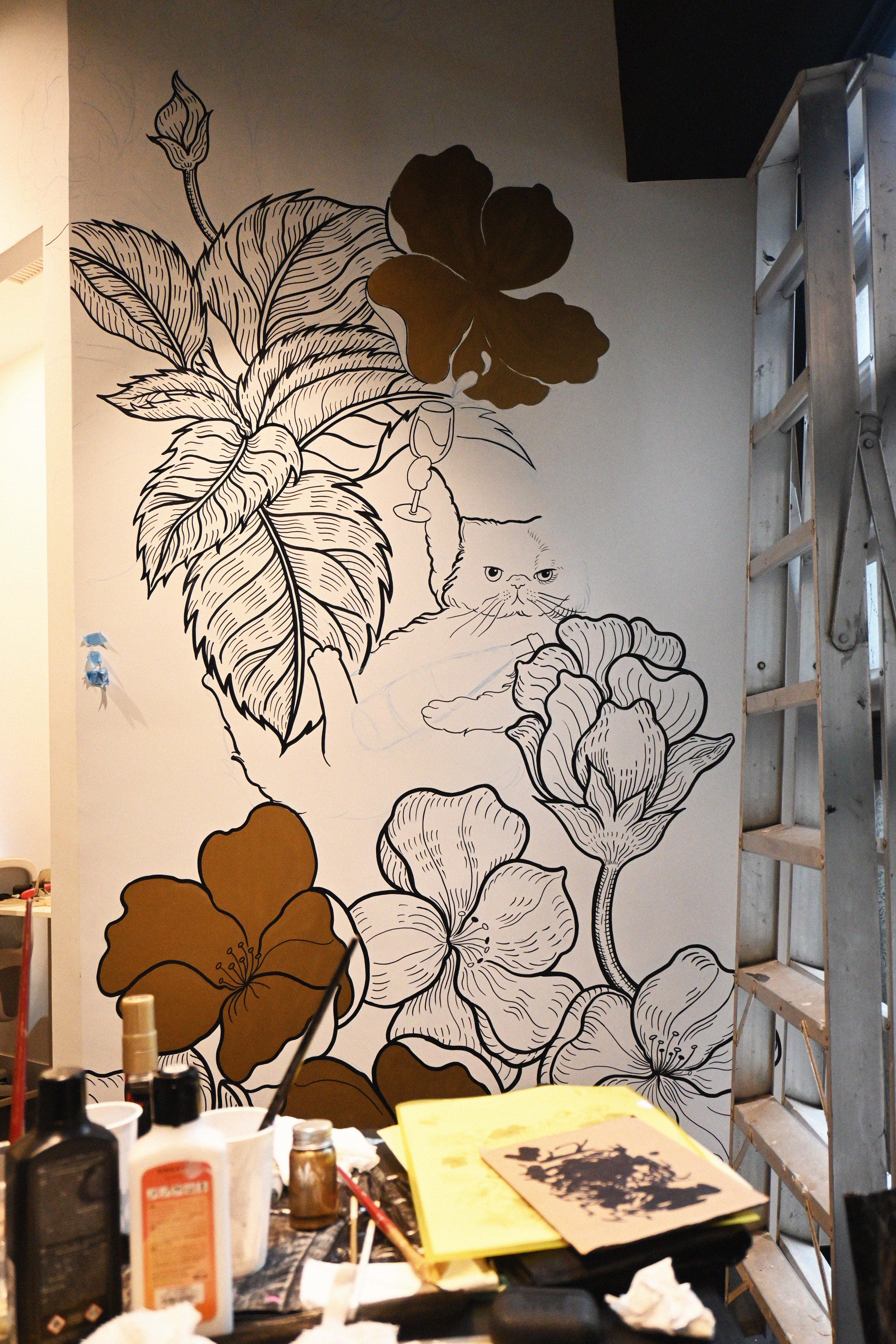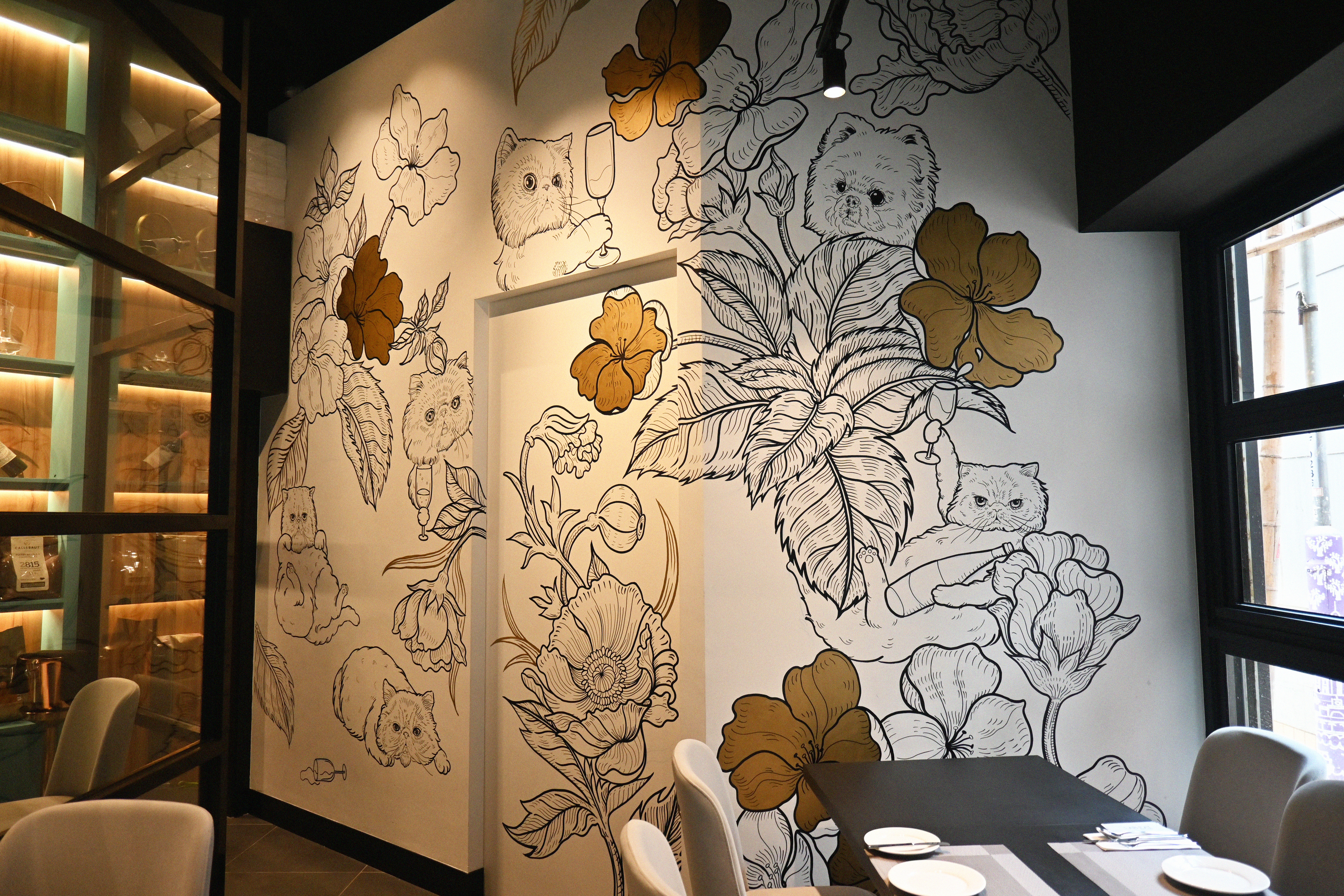 One of the most recent videos that I produced, shot and edited was artist Cynthia Omi’s mural progress for the newly revamped and rebranded LAB EAT TST. She created a design that incorporated the owners’ cats and dogs as part of the floral mural – an image of home, proudly immortalised on their restaurant feature wall.