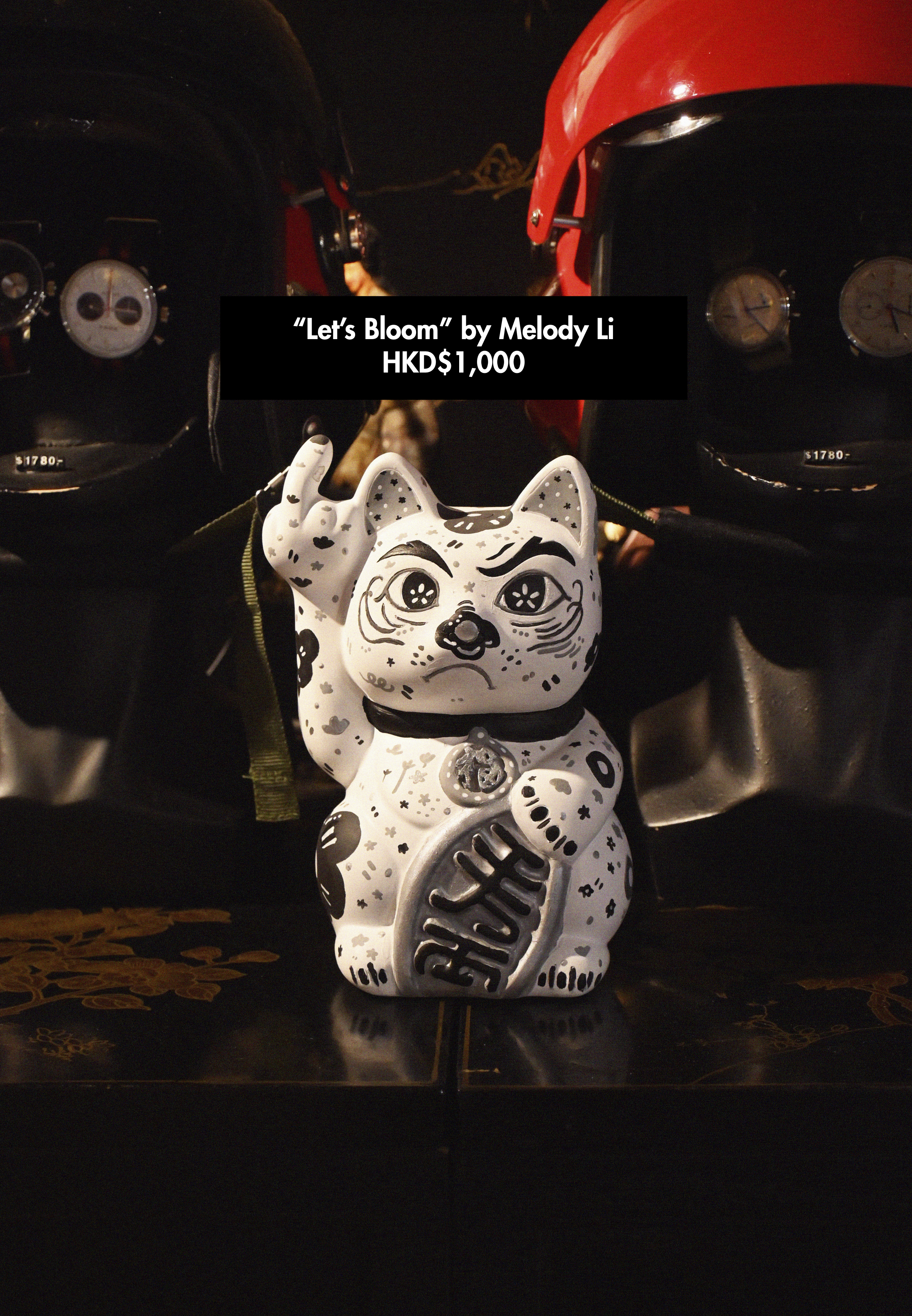 Goods of Desire (G.O.D.) supplied the blank lucky cat statues to us, which were designed and created by Lao Ganbu. We communicated and scouted 8 artists, who were tasked to design / paint / decorate the cat in any way that they would like, showing the diversity of their respective styles.